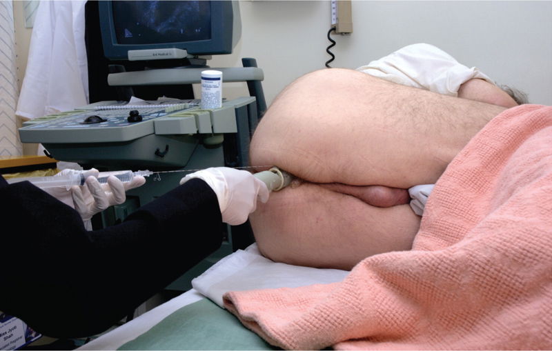 A transrectal ultrasound scan (TRUS) is a scan performed to examine the prostate gland using ultrasound. A small ultrasound probe is gently lubricated and inserted into the rectum (Figure 4).