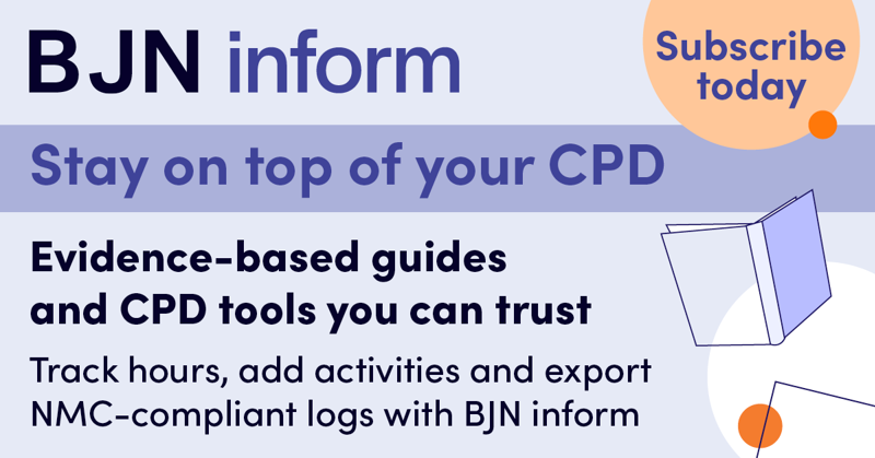Keeping up with CPD and revalidation can be time-consuming. With a personal subscription to BJN inform, you can stay compliant and continue developing your practice without adding to your workload.