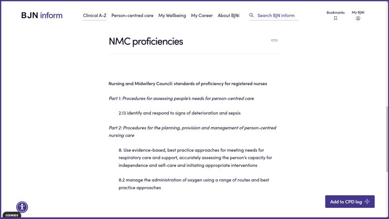 Our Conditions A-Z articles now include an ‘NMC proficiencies’ section, which outlines three NMC Annexe B: Nursing procedures proficiencies, that relate to the procedure being outlined in the text.